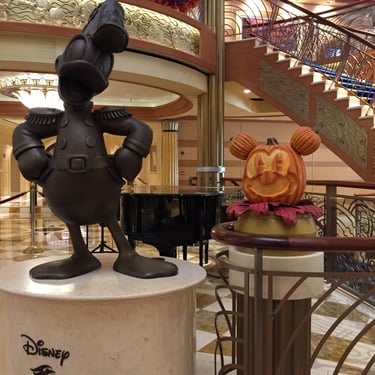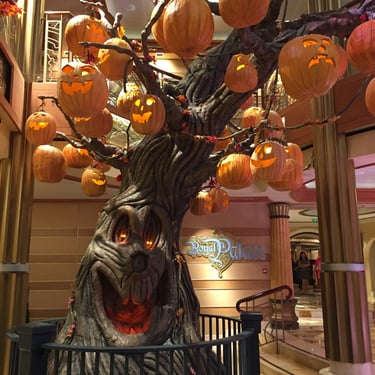 The centerpiece of the Halloween celebration is the Pumpkin Tree in the atrium. This iconic tree begins as bare and mysterious but transforms throughout your cruise, blossoming with jack-o-lanterns and other magical details. It’s one of the most beautiful and enchanting elements of the cruise, setting the spooky tone in the most charming way. Be sure to "carve" out time to listen to the enchanted stories around the tree.